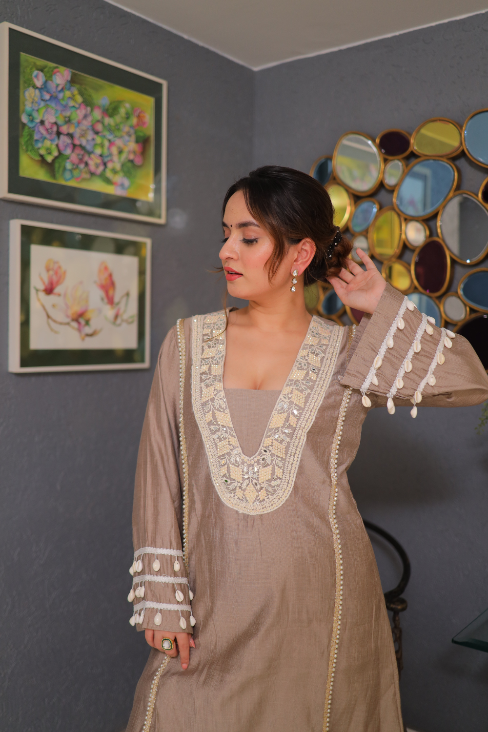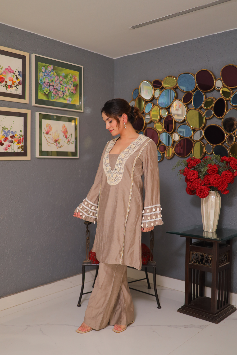 Understated Chic: Grey Co-Ord Set with Shell Detailing