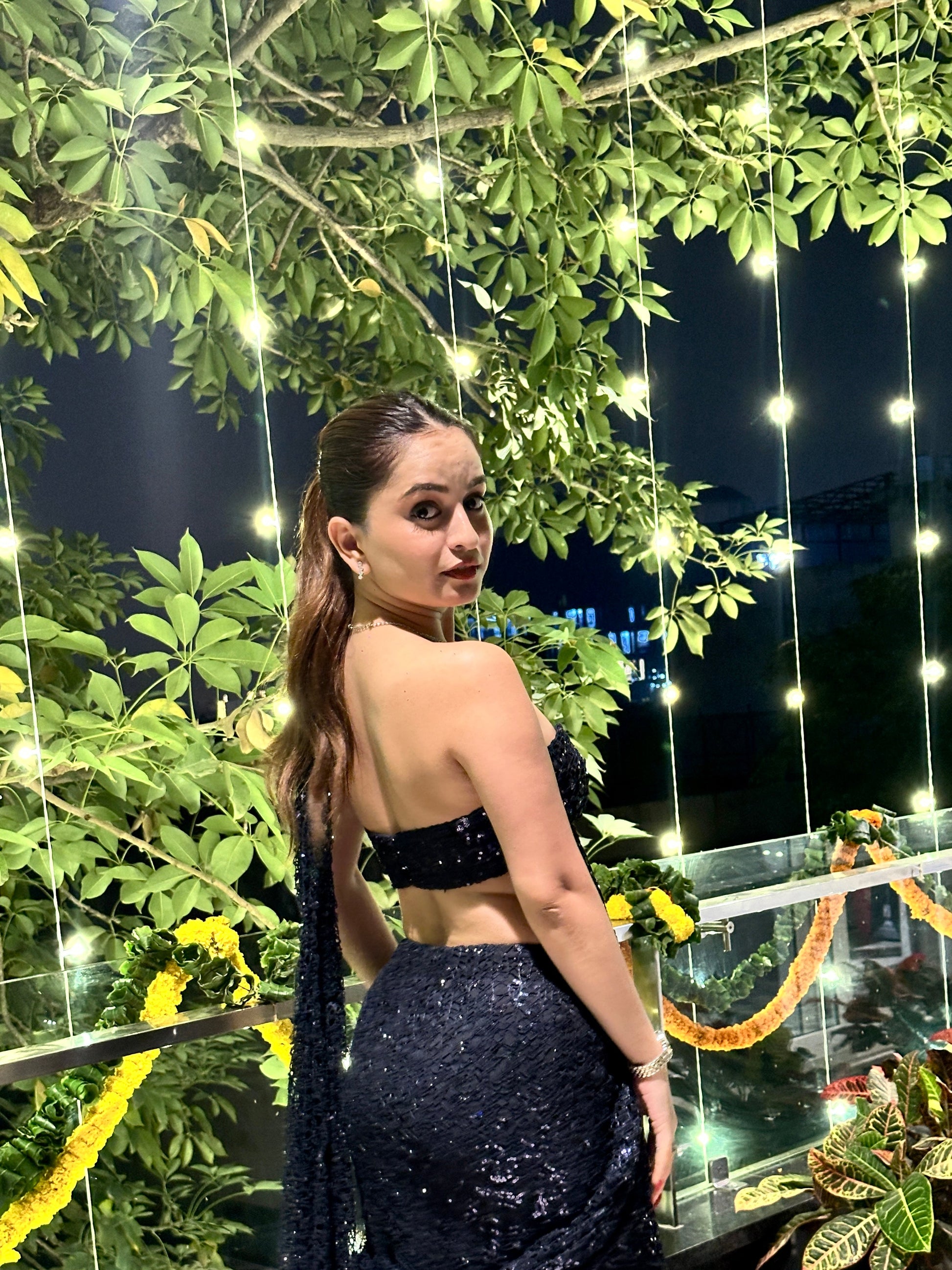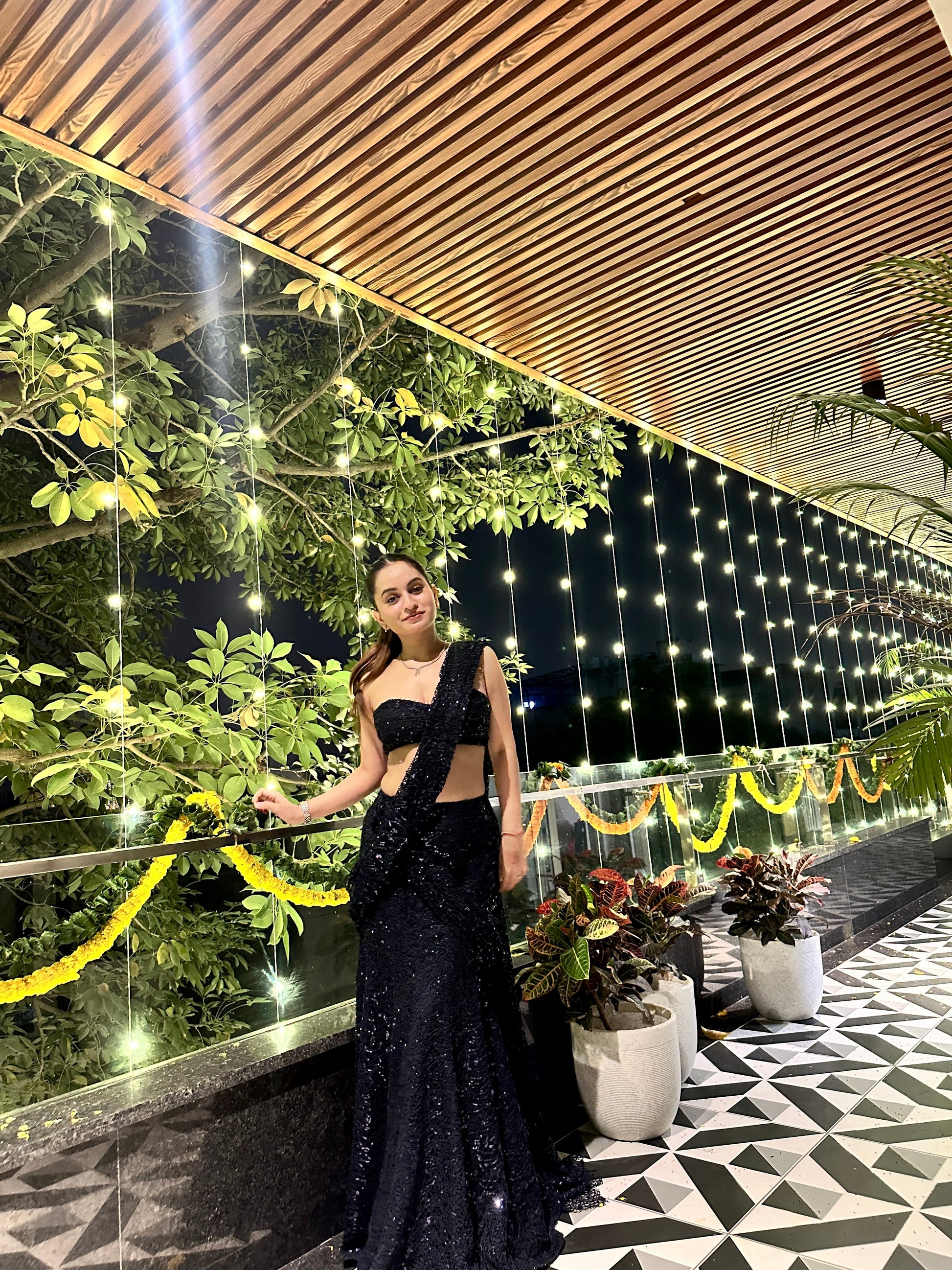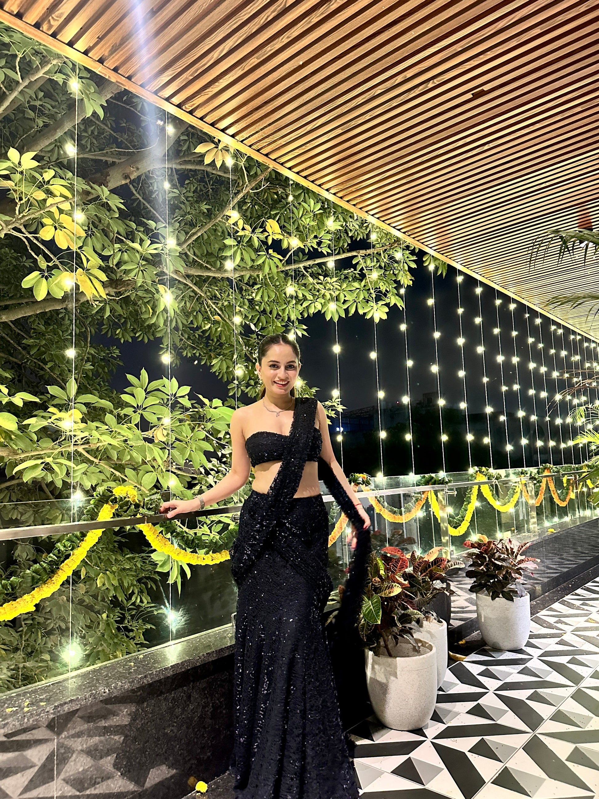 BEBO stunning draped saree features a sleek, figure-flattering design in a luxurious Lycra blend fabric, adorned with shimmering sequins for a touch of glamour. The saree is paired with a sexy tube blouse that offers a modern twist on traditional elegance, perfectly complementing the silhouette. The ensemble is completed with a chic fishtail skirt that gracefully flares at the hem, enhancing the curves and creating a striking silhouette. A delicate, flowing dupatta in the same sequined Lycra fabric adds an ethereal touch, draping beautifully over the shoulder to create an unforgettable look. Perfect for a special evening, this outfit exudes confidence, elegance, and sensuality.