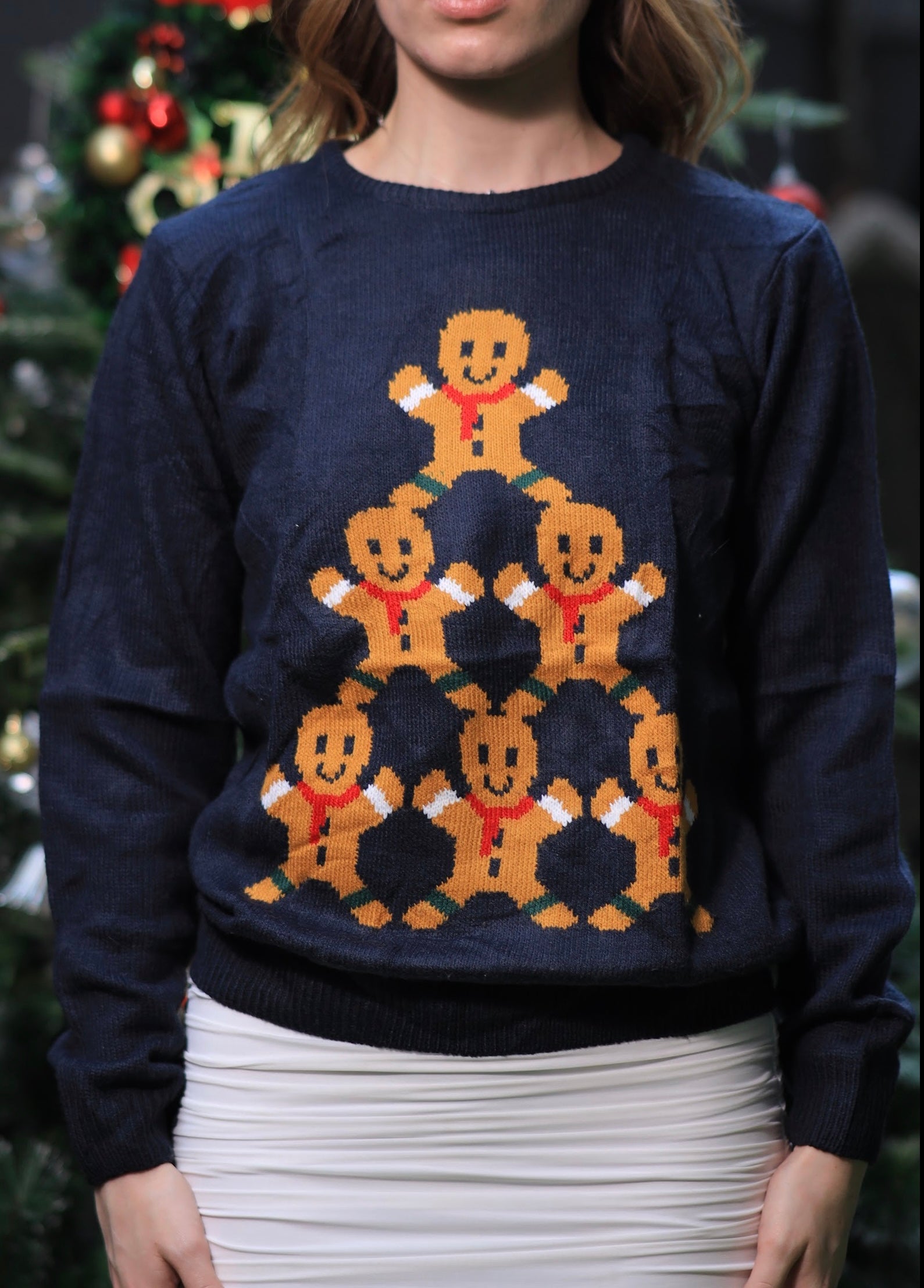 This fun ugly Christmas sweater features a cheerful choco babies with a scarf and top hat, perfect for spreading holiday cheer. Its bold, festive design makes it ideal for ugly sweater parties or cozy Christmas gatherings.