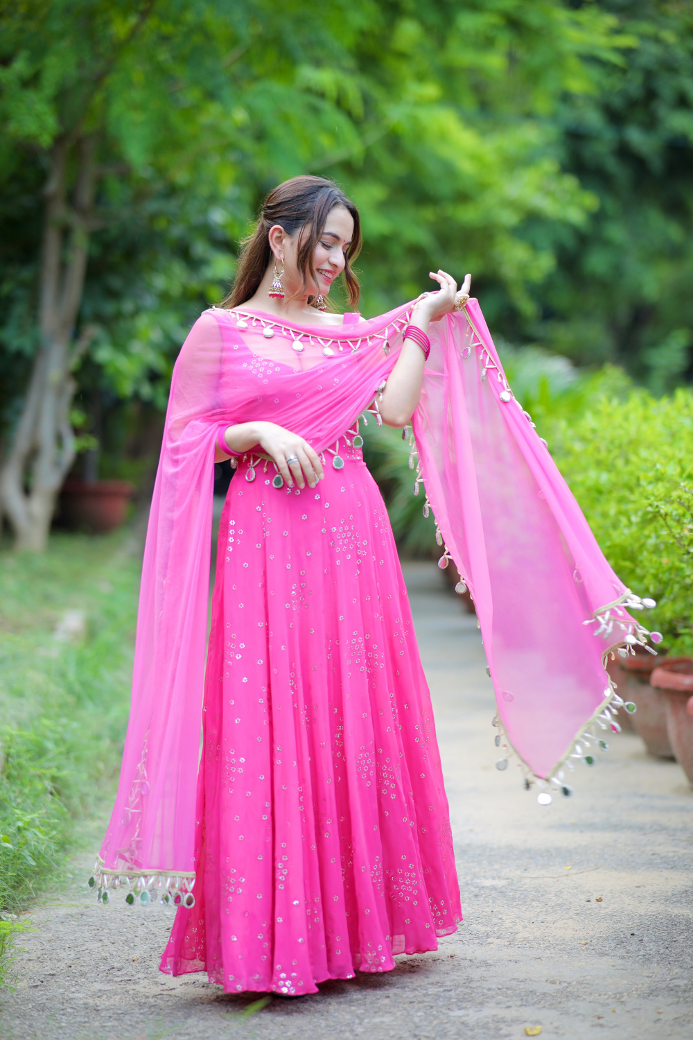 The vibrant pink anarkali of our dreams. This design captures the essence of fun and fashion. Countless hours were poured into perfecting this design. I hope you love it as much as we do!