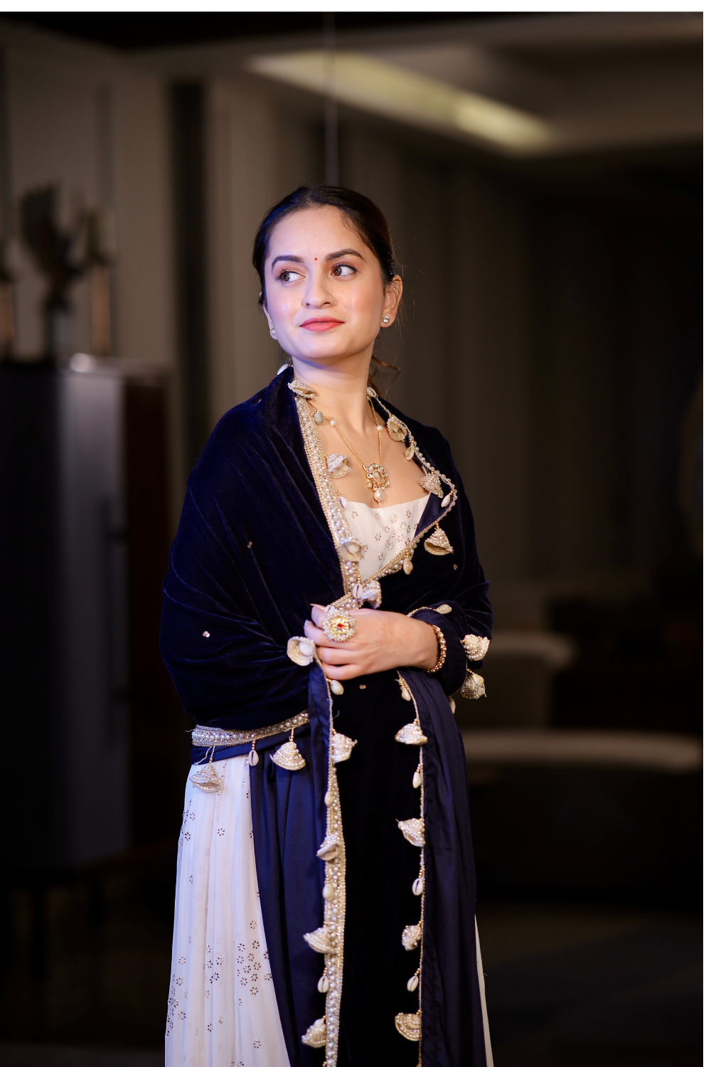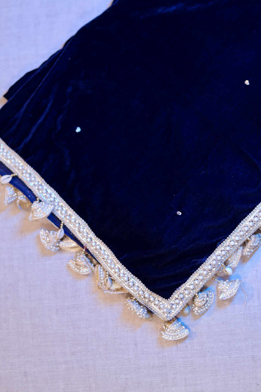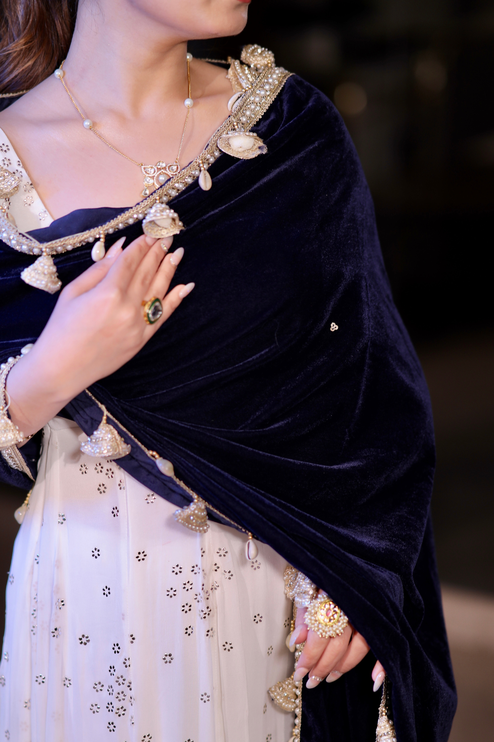 This luxurious velvet shawl combines warmth and style, featuring a soft, plush texture that drapes beautifully. Its intricate embroidered border, with delicate gold or silver thread, adds an elegant touch. Versatile and timeless, it effortlessly complements any outfit, making it the perfect accessory for every occasion.