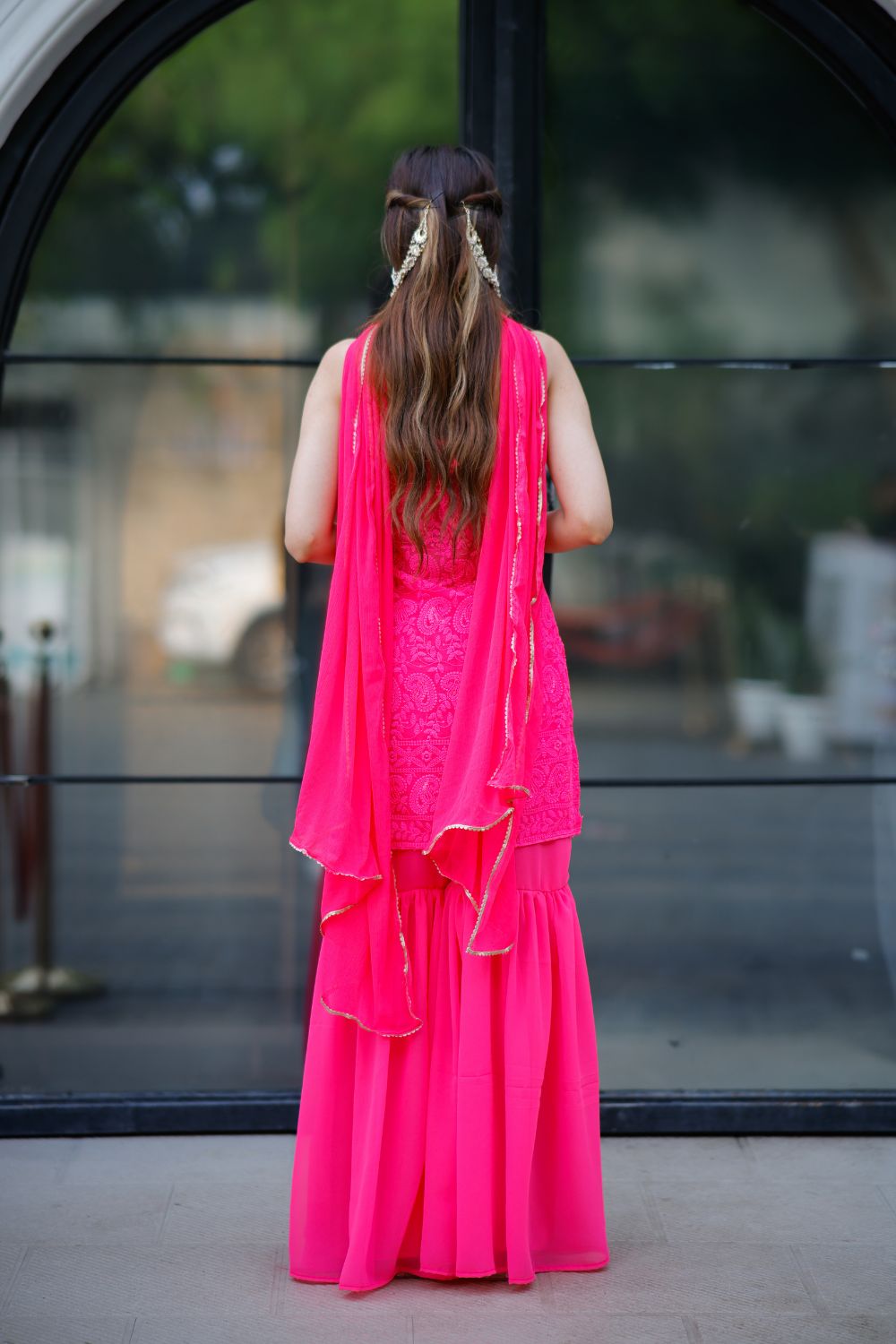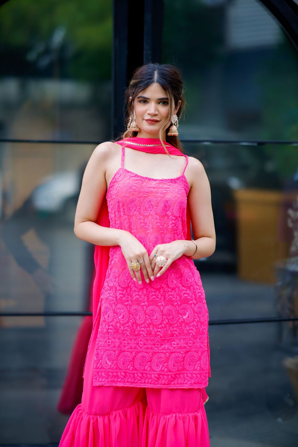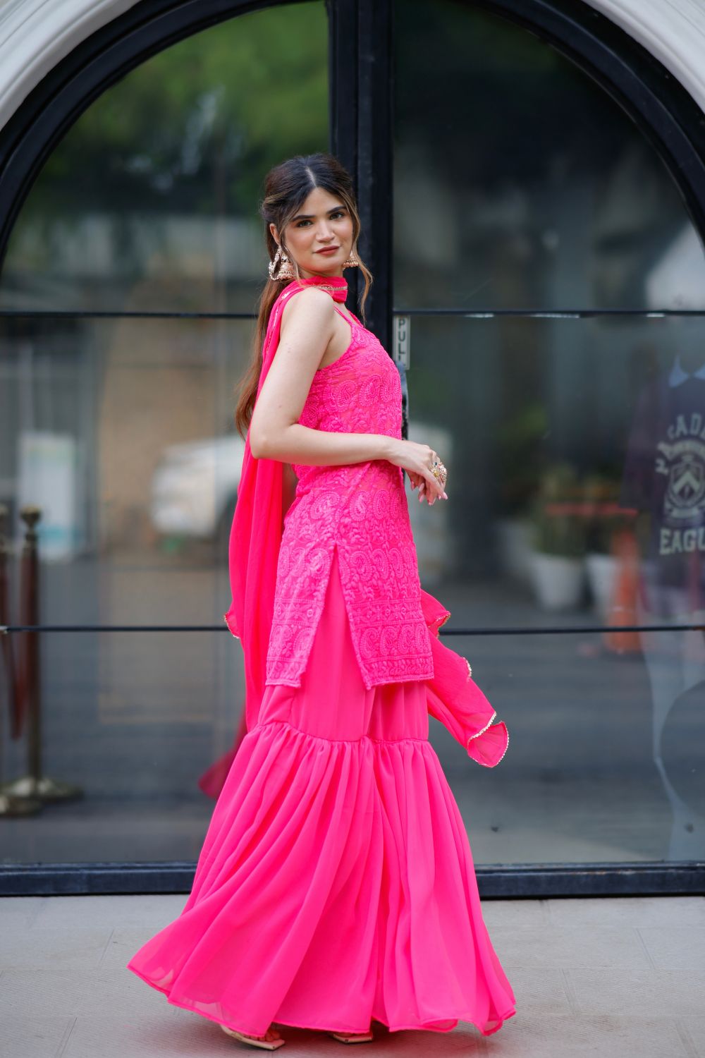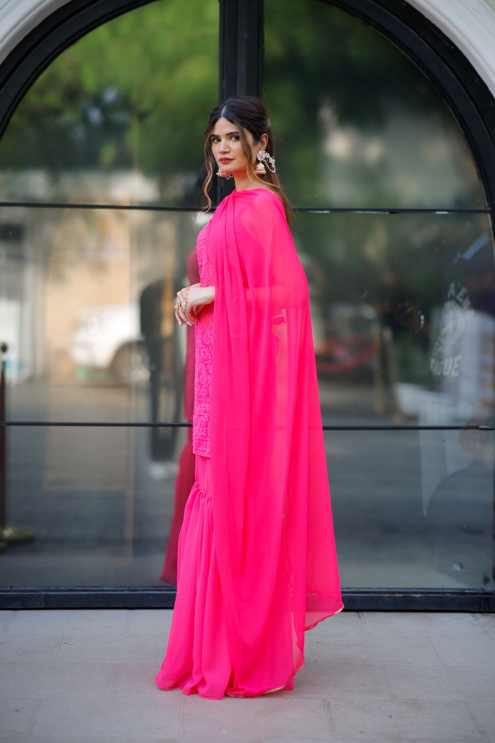 Laila chikankari suit in Vibrant Pink