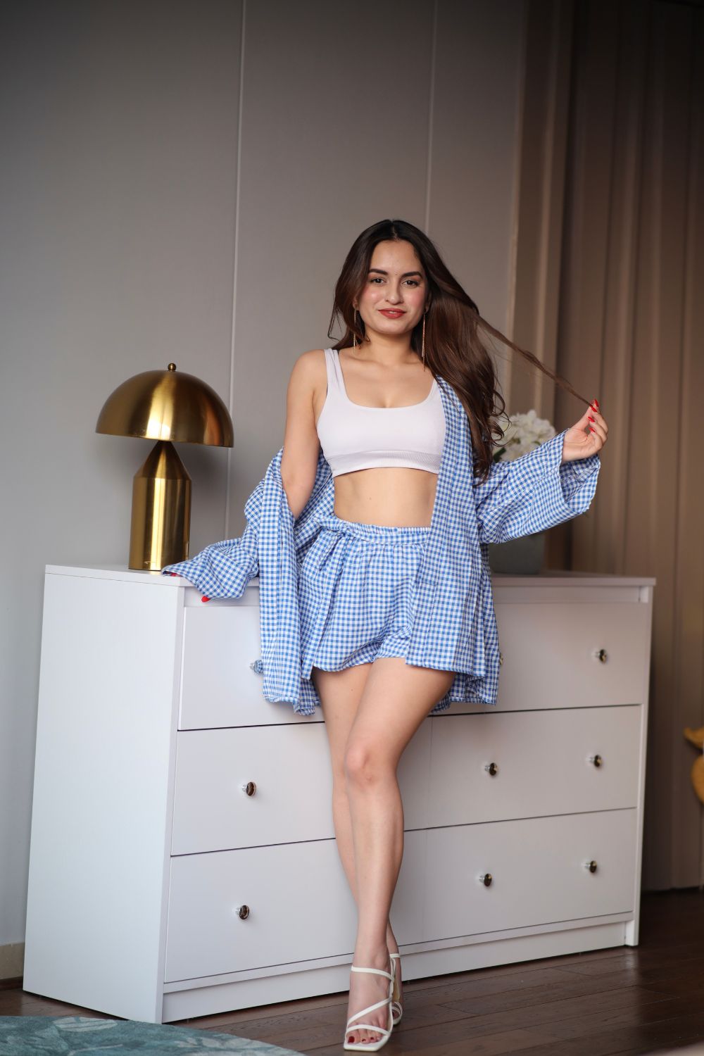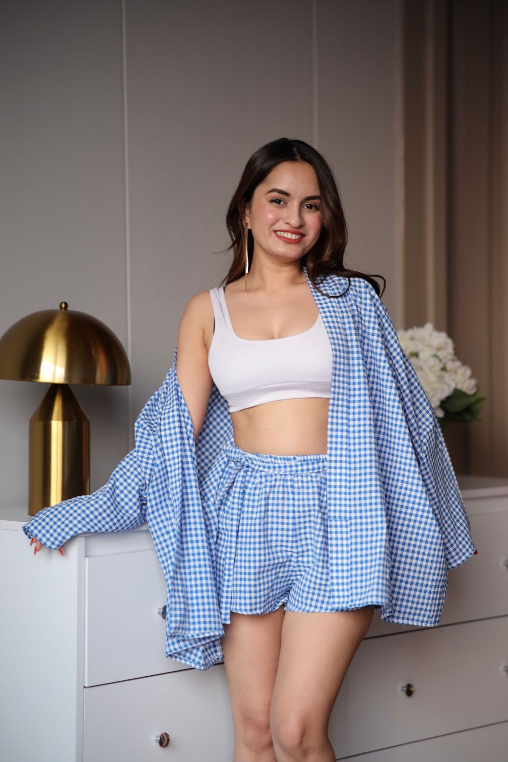Get ready to beat the heat in style with our Lily Blue Cotton Co-ord Set with Shorts! Made from 100% cotton, this set is perfect for summers. Stay cool and comfortable while looking effortlessly chic. Add this must-have to your wardrobe today!