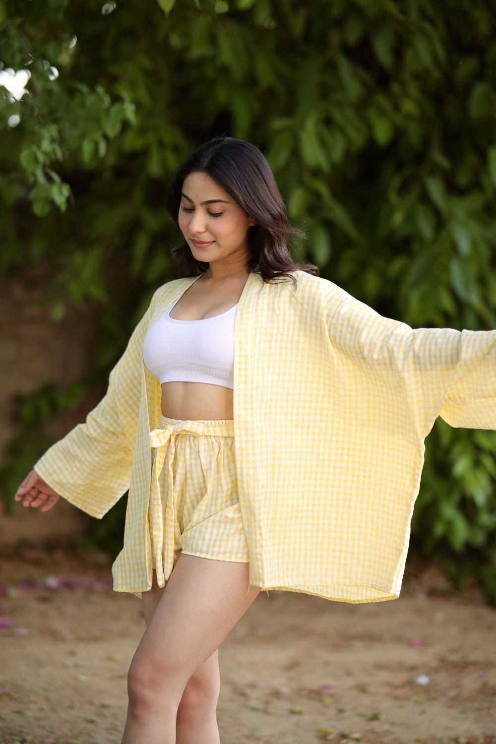 Get ready to slay this summer with our Lily Yellow Linen Co-ord Set! Made with 100% cotton, this set is perfect for staying cool and stylish in the blazing heat. Don't miss out on this must-have piece for your summer wardrobe!