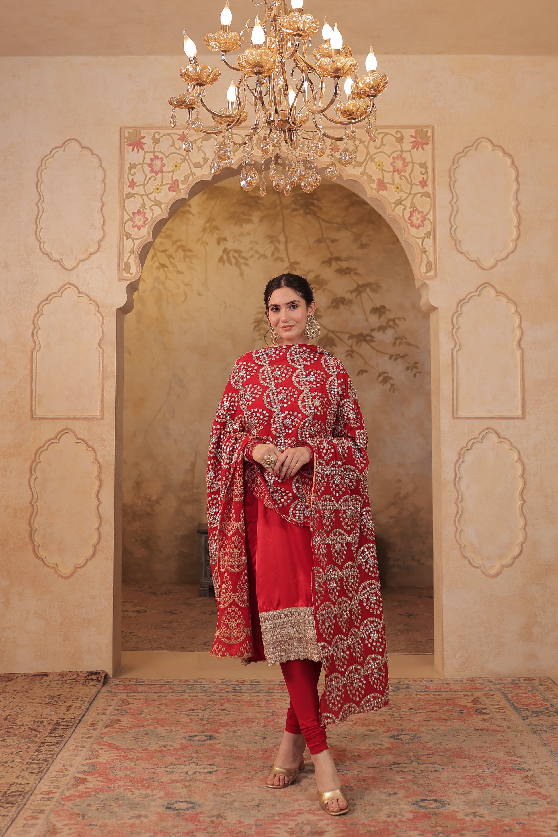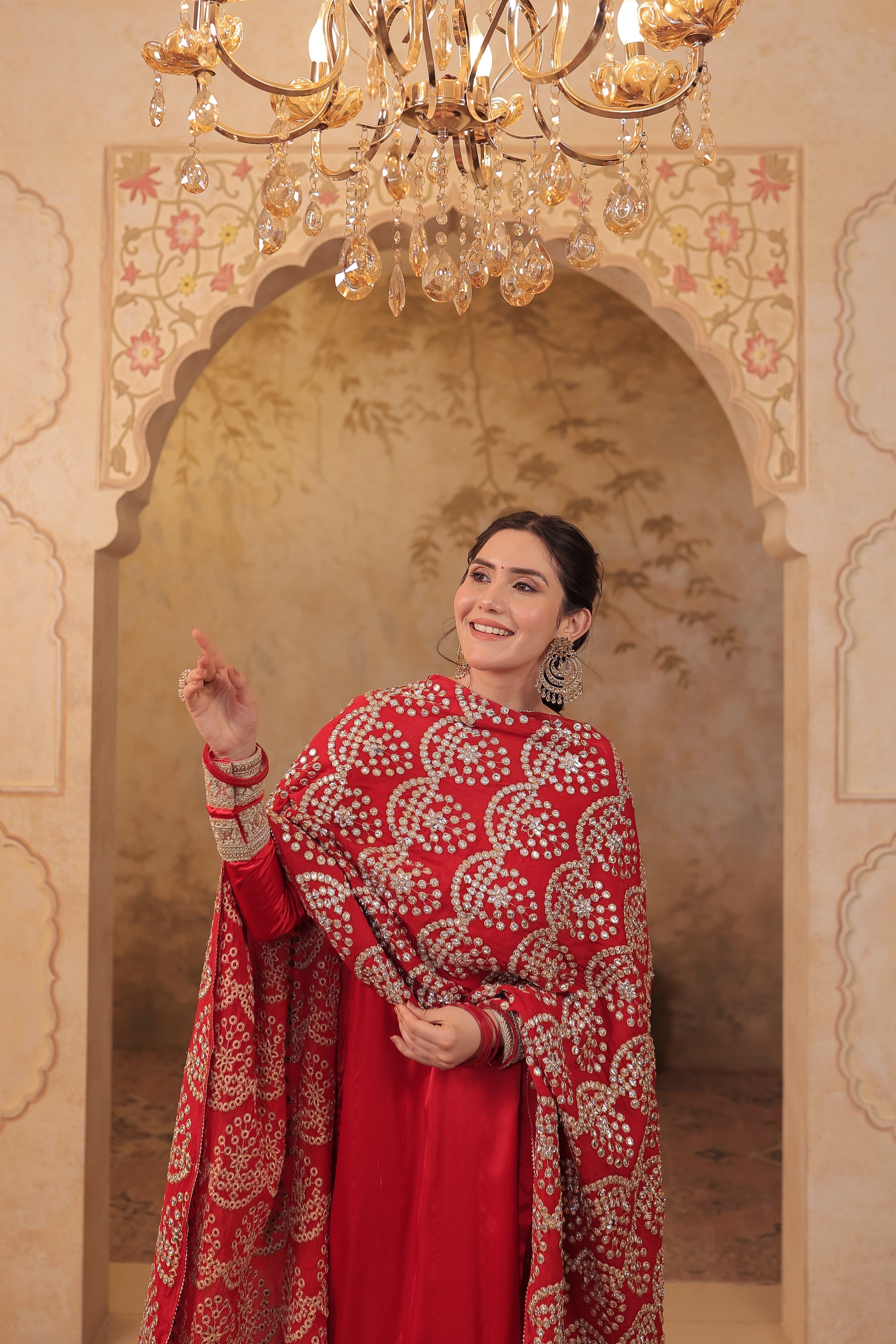 Regal Red Silk Suit – Timeless Elegance with a Heavy Dupatta