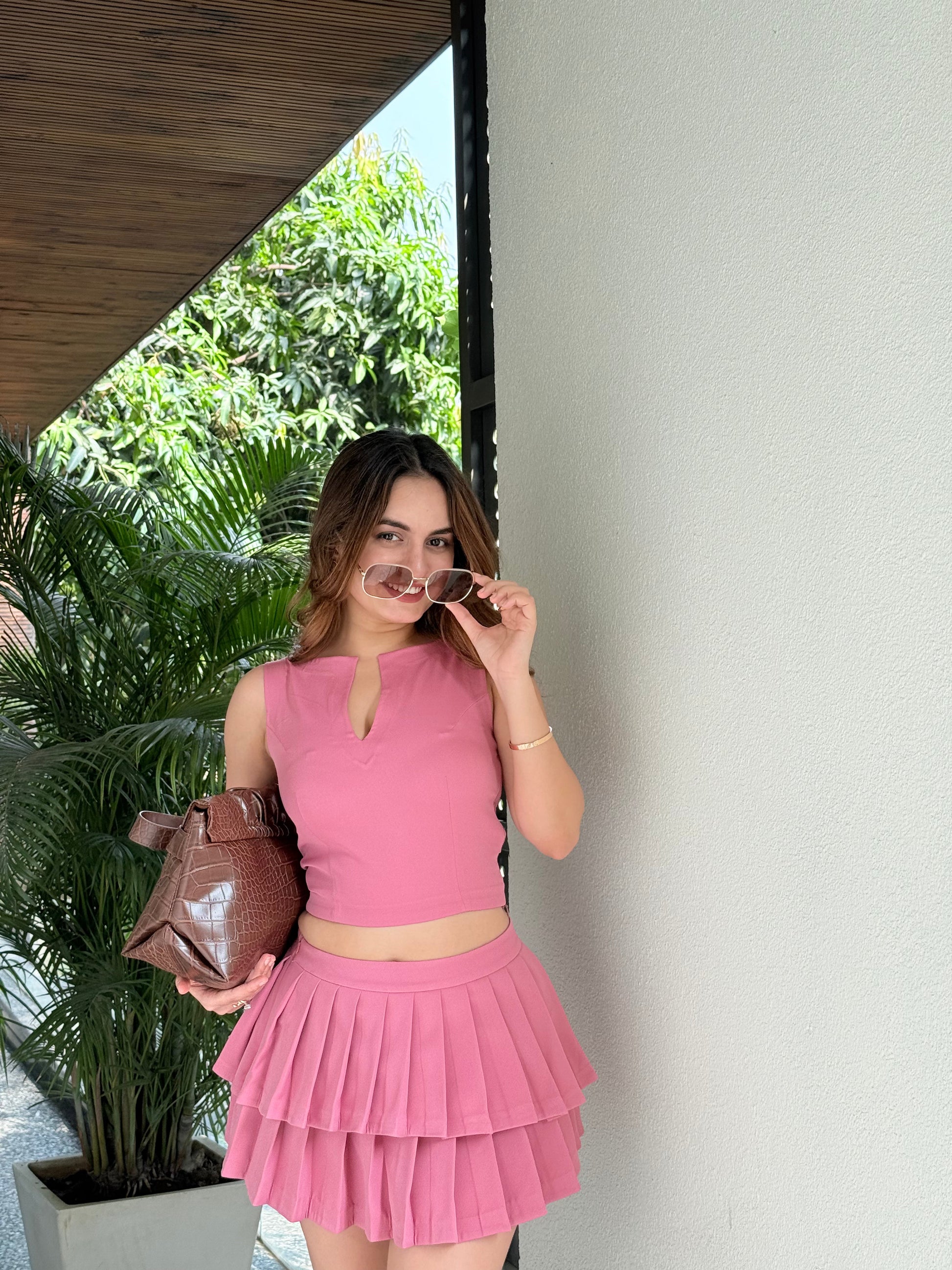 Step into effortless sophistication with our Roma Pink Skirt and Top Set. This timeless co-ord set features: