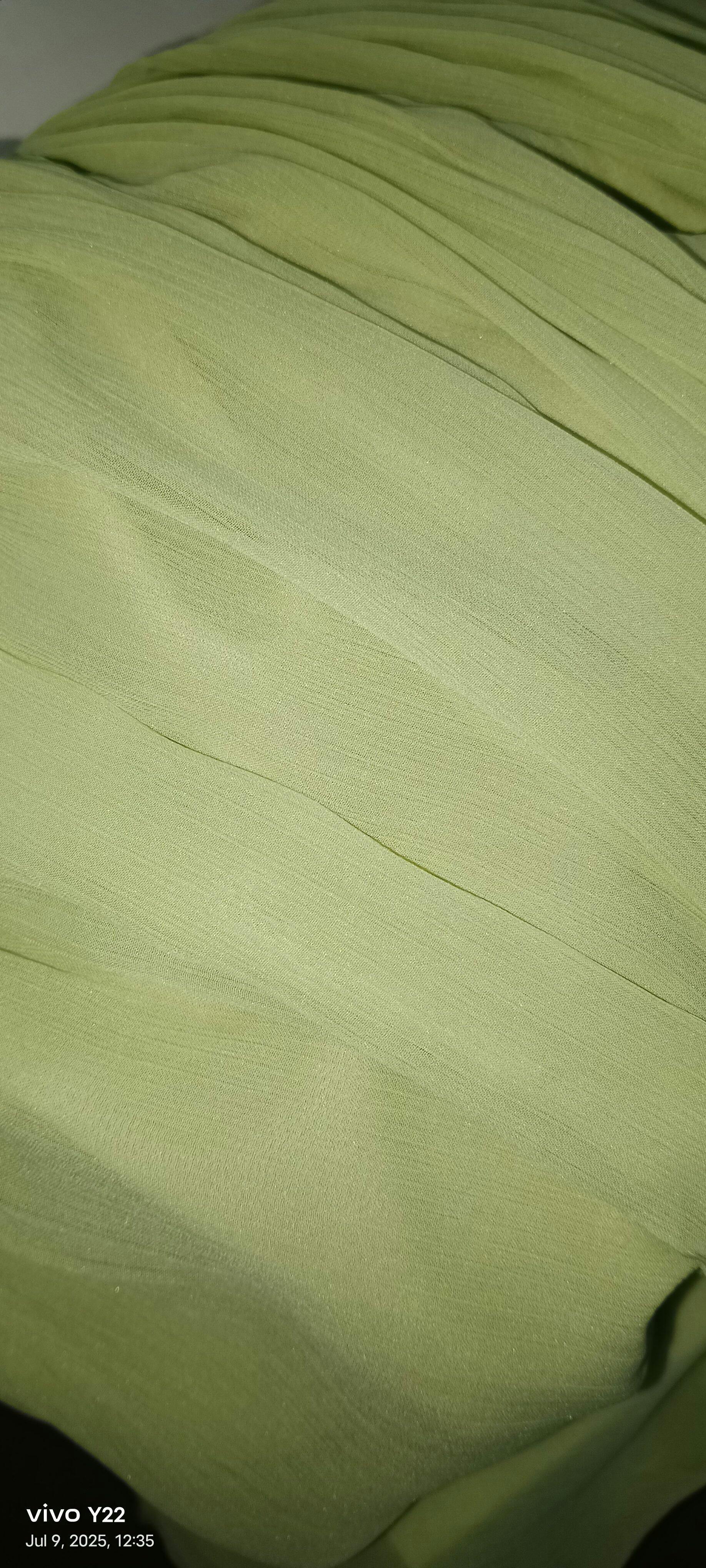 Rory coquette dress in a soft pastel green hue is a perfect blend of feminine charm and sophisticated design. The dress features elegant draping all over, creating a fluid, graceful silhouette that moves effortlessly with every step. The soft folds and fabric flow add a touch of romanticism and drama, making it ideal for special occasions. The unique cut-out sleeve design adds a modern, edgy twist to the otherwise classic look, highlighting the dress’s trendy yet timeless appeal. With its dreamy color and delicate detailing, this dress exudes elegance, making it a perfect choice for anyone seeking a chic, enchanting look.