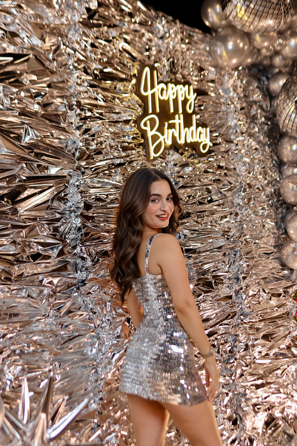 Shine bright in our short sparkling silver dress, designed for those who love to dazzle. The dress features a mesmerizing array of sequins that catch and reflect light, creating a brilliant, eye-catching effect. Its sleek, tailored fit highlights your silhouette, while the short length adds a playful and youthful touch. Ideal for cocktails, parties, or any event where you want to make a statement, this dress combines glamour and fun in one unforgettable package.