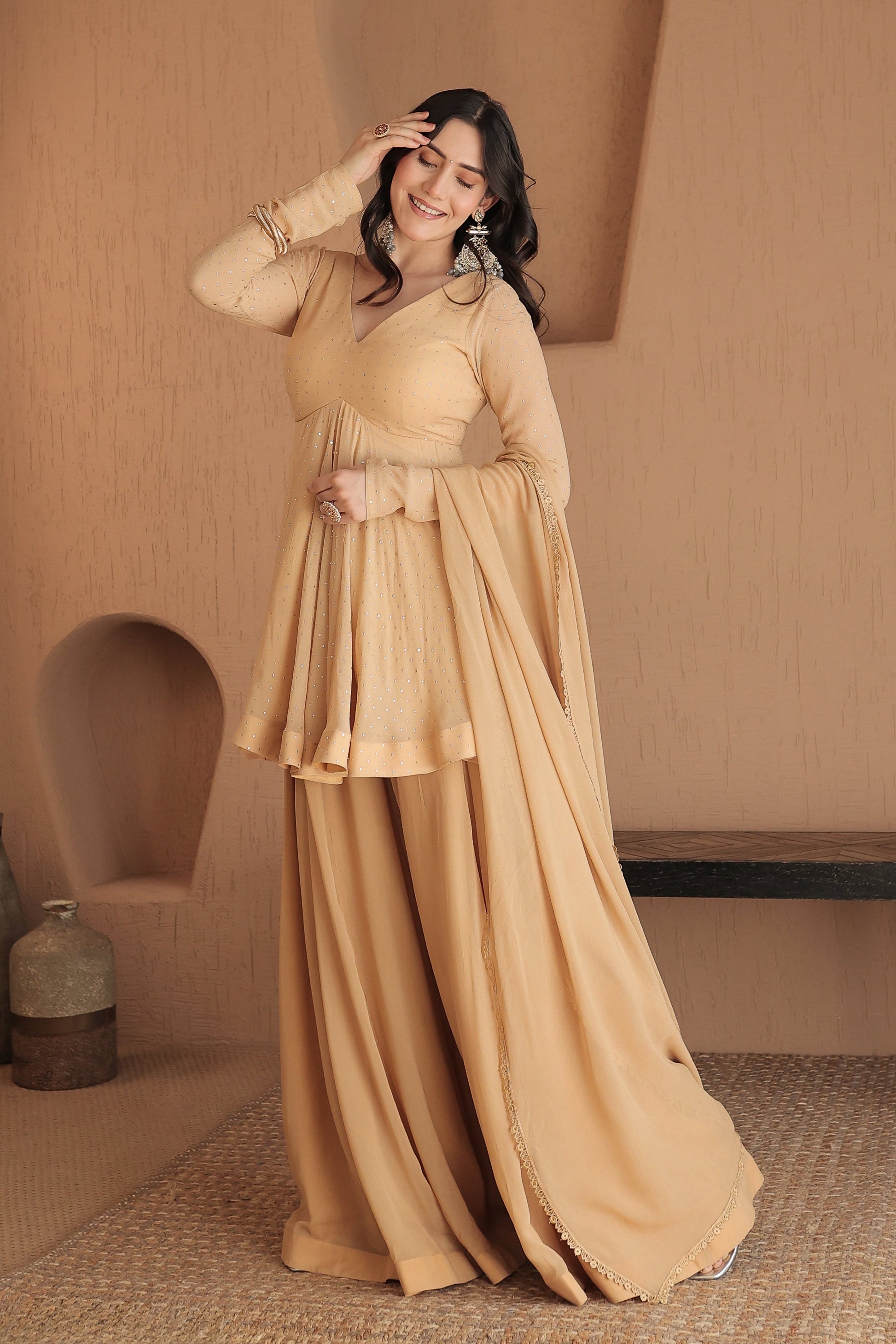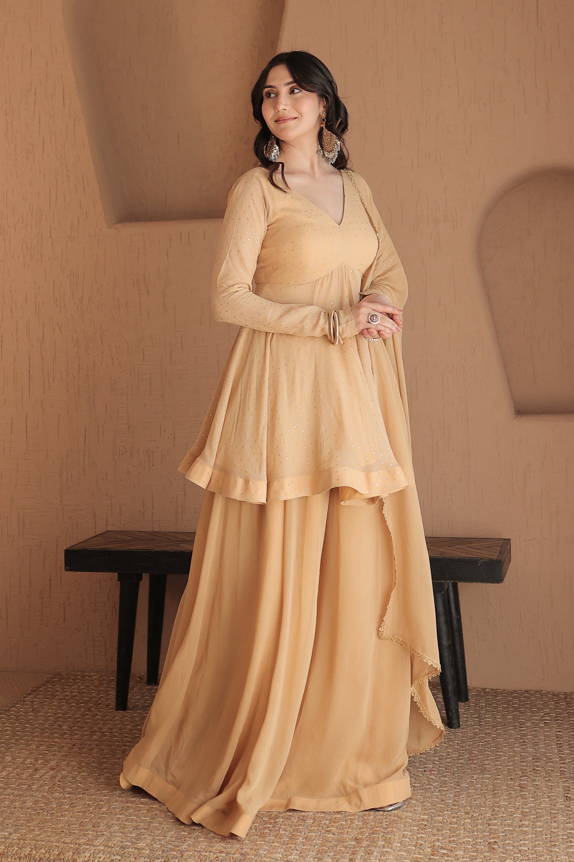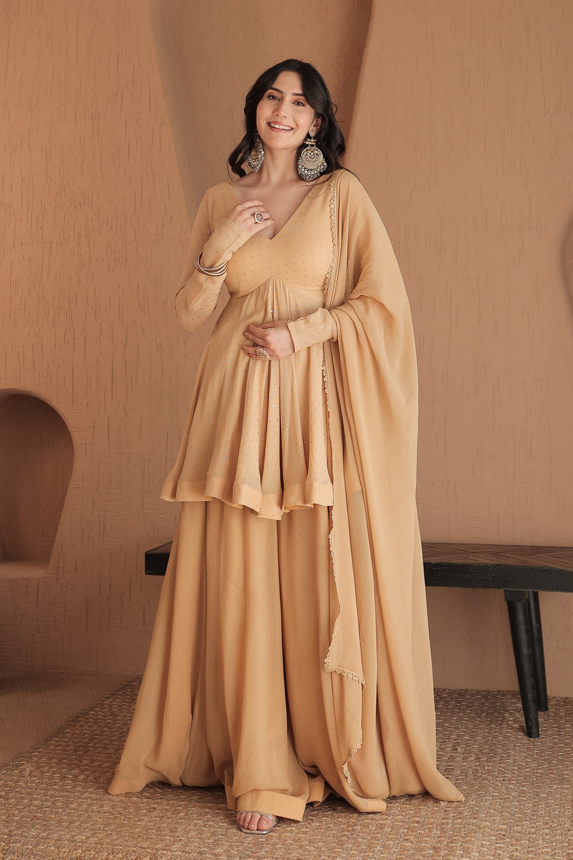 Elegant Peplum Suit – Flowy Peplum Kurti & Sharara with Soft Dupatta