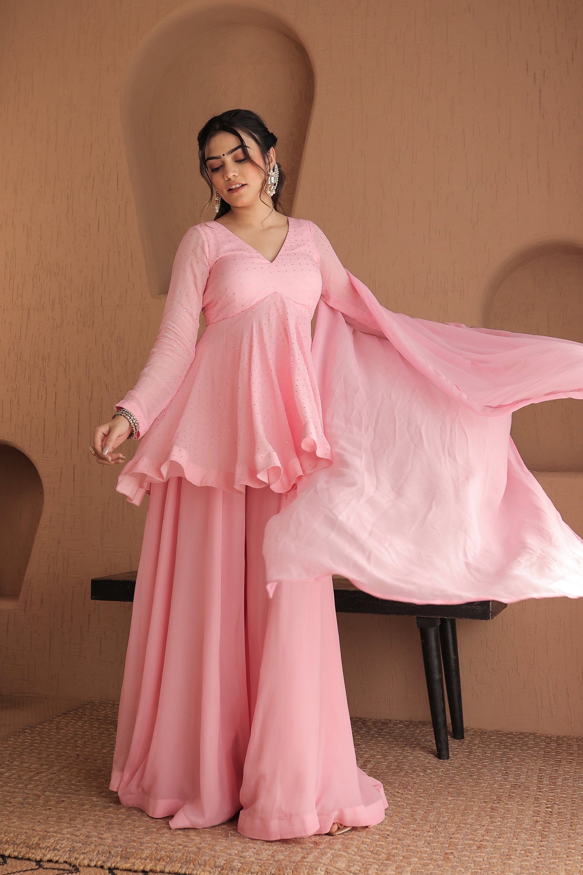 Elegant Peplum Suit – Flowy Peplum Kurti & Sharara with Soft Dupatta