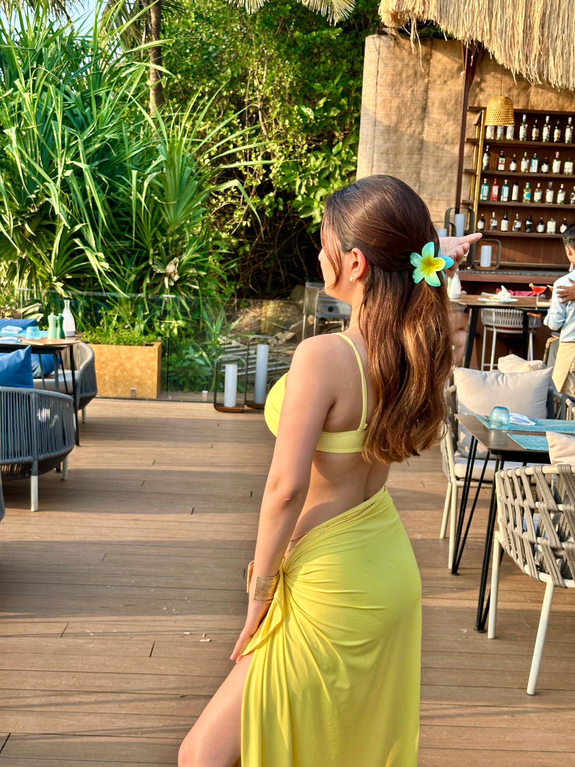 Crafted from soft, durable fabric with a smooth, buttery feel, this set not only ensures a perfect fit but also offers long-lasting comfort and flexibility. Whether you’re lounging by the pool or taking a stroll along the shore, this set will have you turning heads with its bold, sunny hue and effortlessly stylish design.